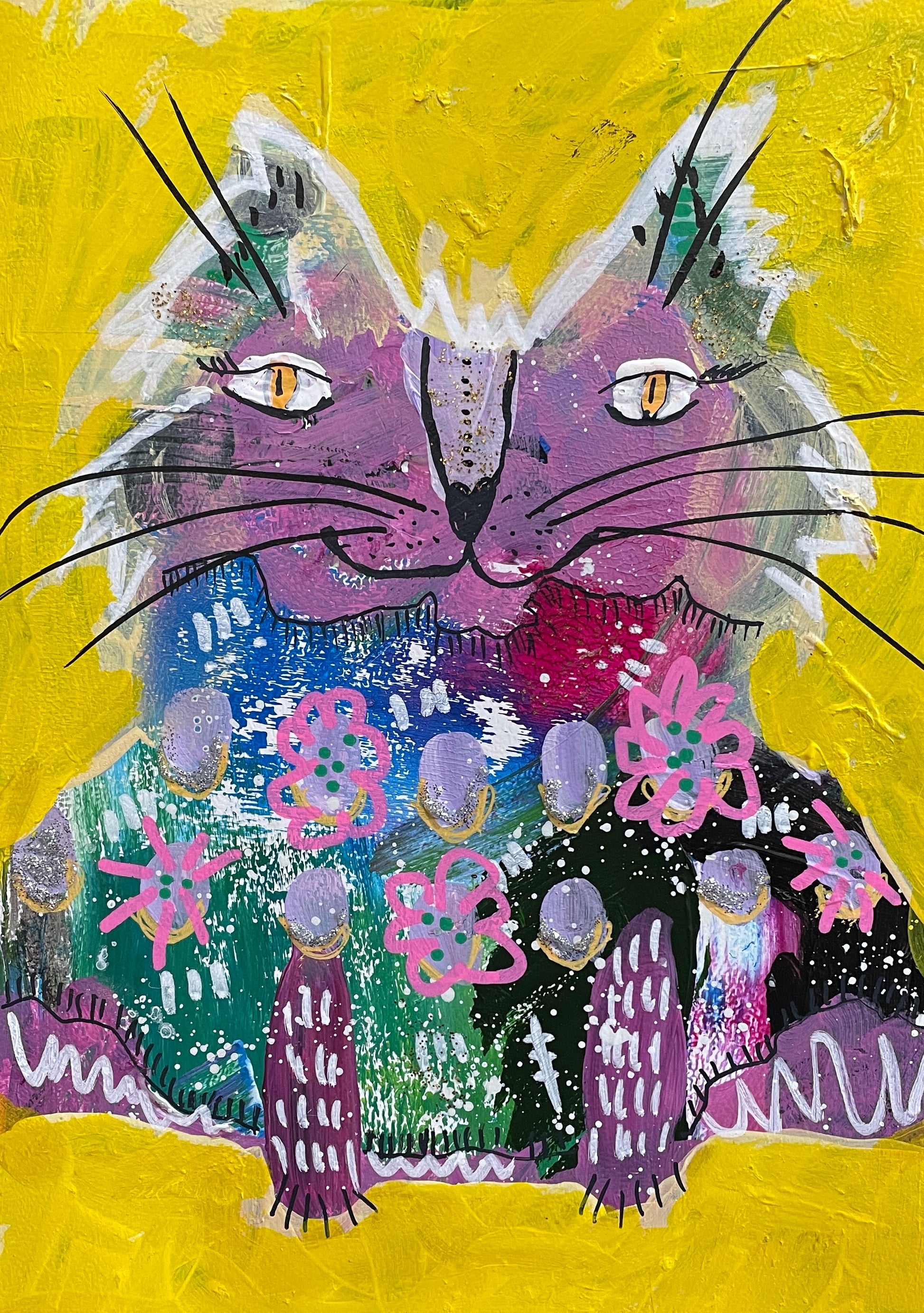 From the February Flowers Collection, she is wild and she is loud. An 8x10 Acyrlic on 130lb Watercolor paper with mixed media